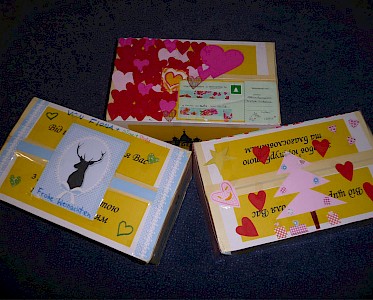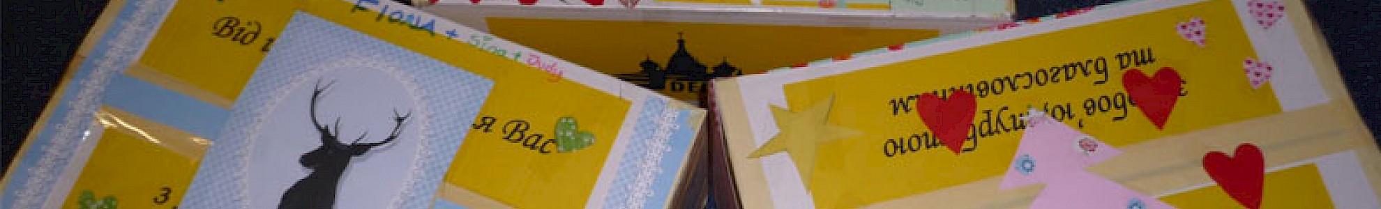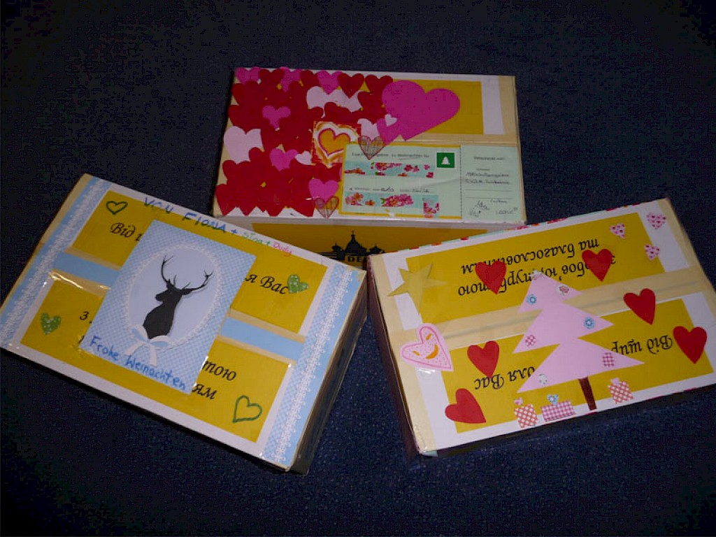„Wir würden gerne mit den Mädels der Jungschar in Rechtenbach Hoffnungsboxen packen. Wo bekommt man leere Kartons?“ Einige Tage später erhalten wir drei Boxen, handsigniert, wunderschön verziert!