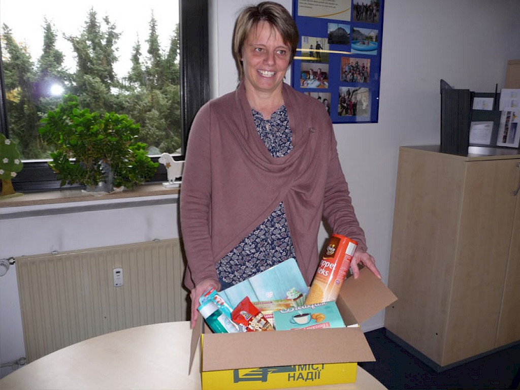 „Frau Knöß, ich habe in meiner Gemeinde Geld gesammelt. Es freut mich, dass Sie sich wieder bereit erklärt haben, von unseren Spenden einzukaufen und Hoffnungsboxen zu packen!“