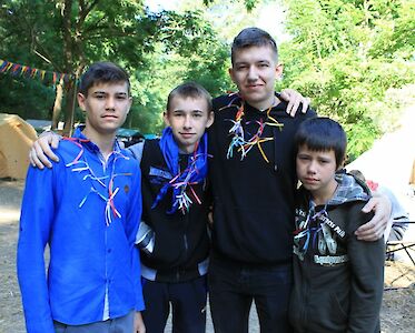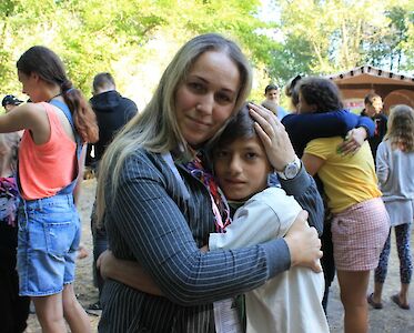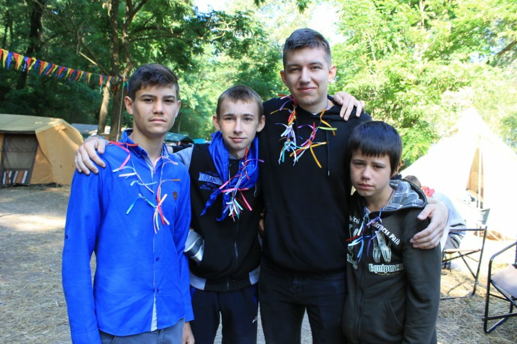 „Ich bin entschieden Jesus zu folgen…“ Laut schallt unsere Lagerhymne über den stillen Dnepr. Bei der letzten Strophe wird die Fahne von „Brücke der Hoffnung“ eingeholt. Lena gibt letzte Mut machende Worte auf unsere Heimreise.