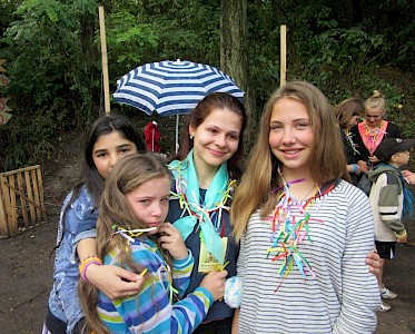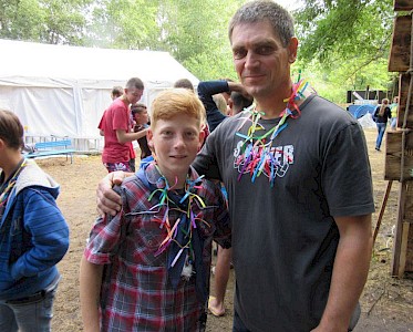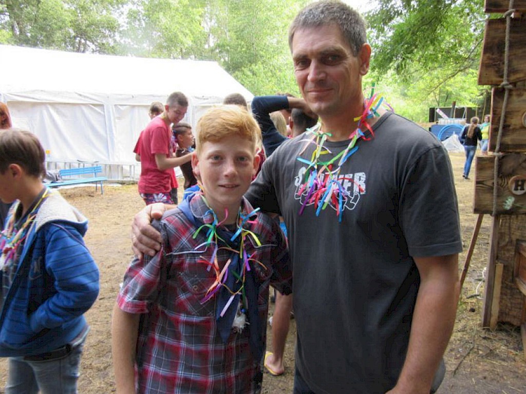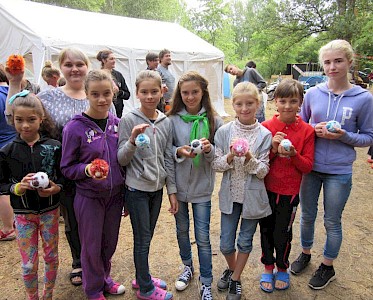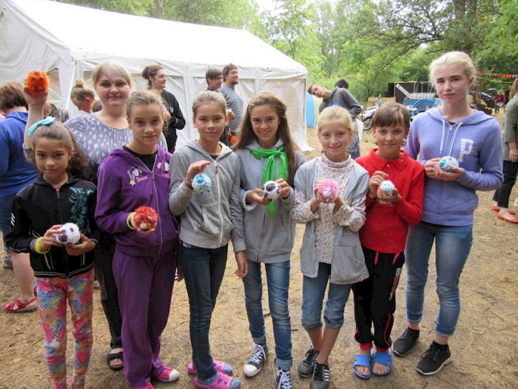 „Ich bin entschieden Jesus zu folgen…“ Laut schallt unsere Lagerhymne über den stillen Dnepr Fluss. Bei der letzten Strophe wird die Fahne von „Brücke der Hoffnung“ eingeholt. Igor, unser Hirte, gibt uns letzte Mut machende Worte und als Andenken gestrickte Schafe mit auf unsere Heimreise. Kinder umarmen ihre Leiter, wollen sie nicht loslassen. Tränen fließen. Ein letzter trauriger Blick auf unsere Bauerhöfe. Dann verschwinden die Fahrzeuge hinter Bäumen.