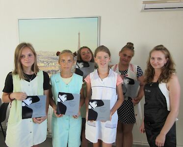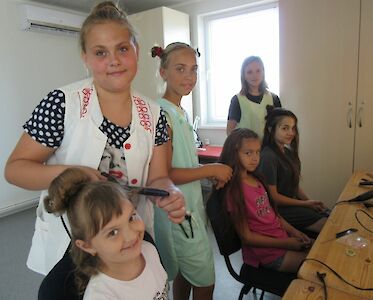 Seit einigen Jahren bietet Darina Panassenko in unserer „Lehrwerkstatt“ Kurse für Maniküre und Pediküre an. In der Zwischenzeit haben wir einen weiteren Kurs. Die Mädchen lernen verschiedene Frisuren zu machen.