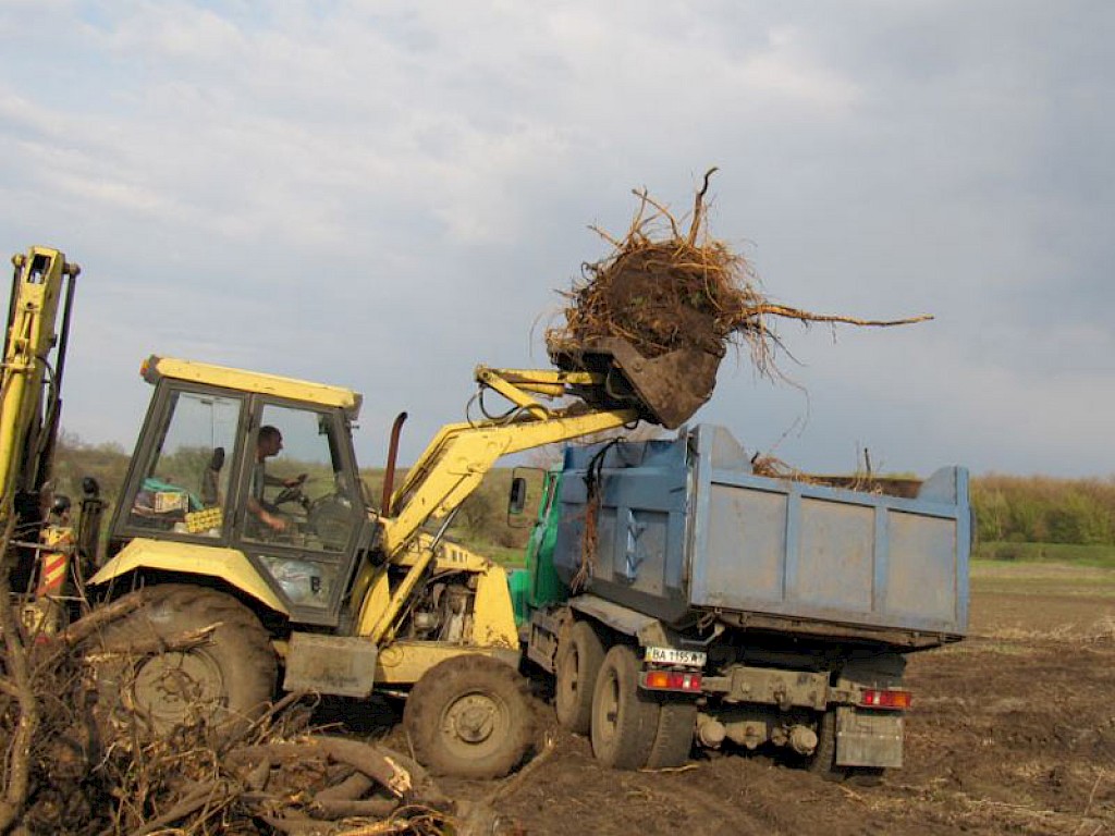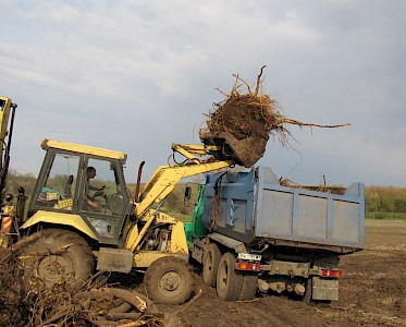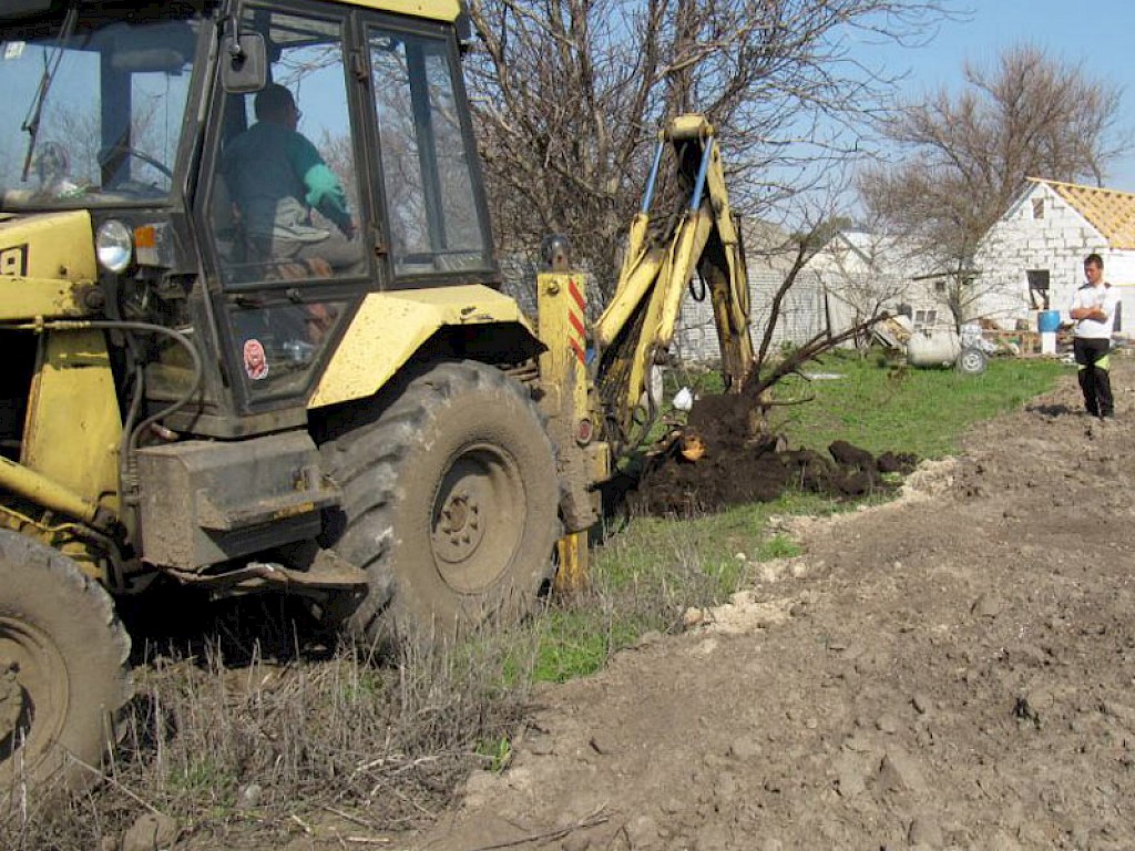 Hinter dem großen Garten, in dem die Kinder spielen sollen, haben wir 3.500 m2 Land, das aber erst einmal wieder zu Ackerland gemacht werden muss, weil es viele Jahre nicht mehr bebaut wurde. Zuerst mussten Bäume gefällt und Büsche abgeschnitten werden. An zwei Tagen wurden mit schwerem Gerät alle Wurzeln ausgegraben. Im Anschluss wurde der ganze Acker gepflügt.