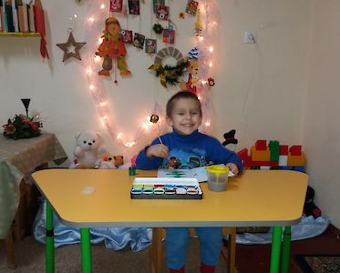 Draußen hat frischer Schnee die grauen Hütten in Taburische unter einer weißen Decke versteckt. Am Morgen ist es draußen eiskalt, doch "Villa Sonnenschein" erwartet unsere Spatzen mit einer wohltuenden Wärme und mit fröhlicher Weihnachtsmusik.