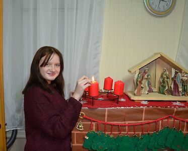 Die Adventszeit ist eine Zeit des Wartens auf Weihnachten. Auch in unserem „Zufluchtsort“ in Odariwka bereiten wir uns auf das Fest vor. Es hat geschneit und es ist bitterkalt. Wenn wir mit den Kindern zusammen die Weihnachtsgeschichte lesen oder gemeinsam Weihnachtslieder singen, vergessen wir die dunkle Realität des Krieges. Jeden Tag öffnen wir eine Türe des Adventskalenders. Dahinter verbergen sich Aufgaben, die wir zusammen erfüllen. Wir zünden die Kerzen am Adventskranz an und basteln zusammen Weihnachtsschmuck. Gemeinsam tauchen wir in die wunderbare Weihnachtsatmosphäre ein und versuchen, unsere Sorgen und Nöte zu vergessen.
