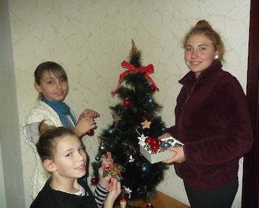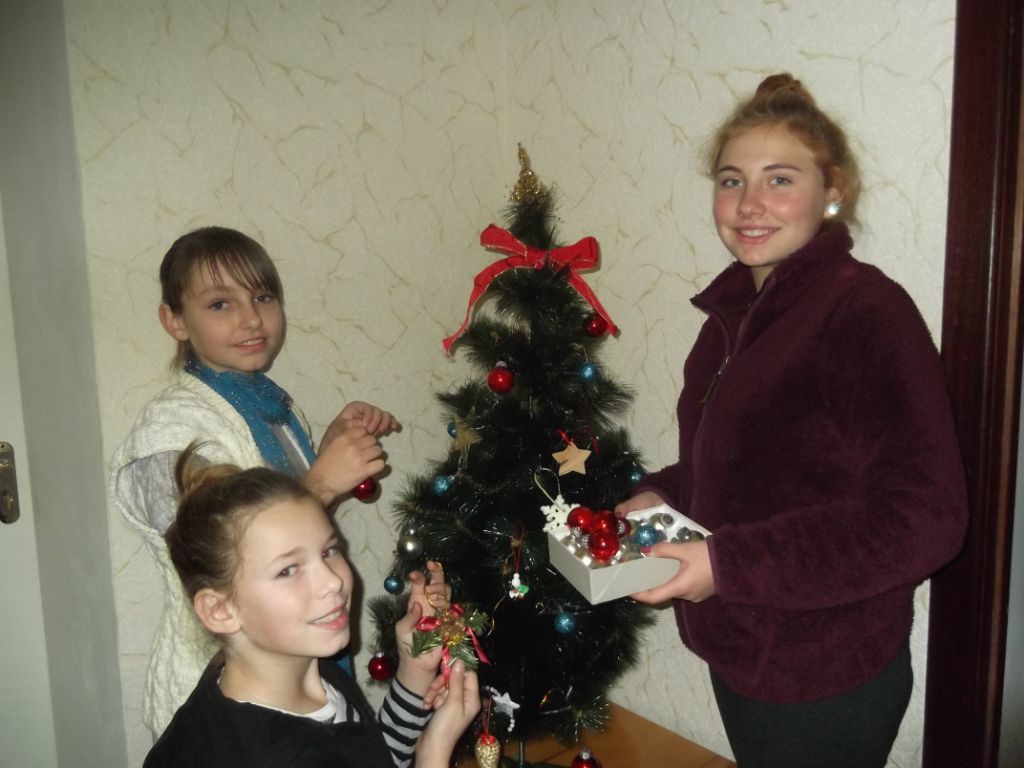 In diesem Jahr hat Aliona Raschkowa, unsere Hausmutter, in Galja Sadowskaja und in Nastja Morosowa bereit gute Helferinnen. Am Samstag vor dem 1. Advent haben sie unser Haus festlich geschmückt.