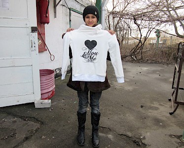 Ein wenig verloren steht Alina, ein neues Mädchen, am Eingang von unserem „Zufluchtsort“. Ihre Schuhe sind zerrissen, ihre Strümpfe bei dem matschigen Wetter total durchnässt. Die Mutter von Alina ist vor kurzem mit ihrer Tochter zu Alinas Großmutter zu uns nach Odarjewka gezogen. Sie leben nur vom Garten und vom Kindergeld.