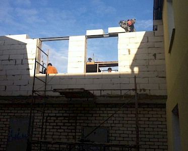 In den vergangenen Monaten ist der Ansturm auf unsere „Villa Sonnenschein“ ständig angewachsen, besonders durch die Flüchtlinge und durch Kinder, die in der Wirtschaftskrise unsere Suppenküche besuchen. Unsere Räume sind stark ausgelastet. Da haben wir beschlossen anzubauen.