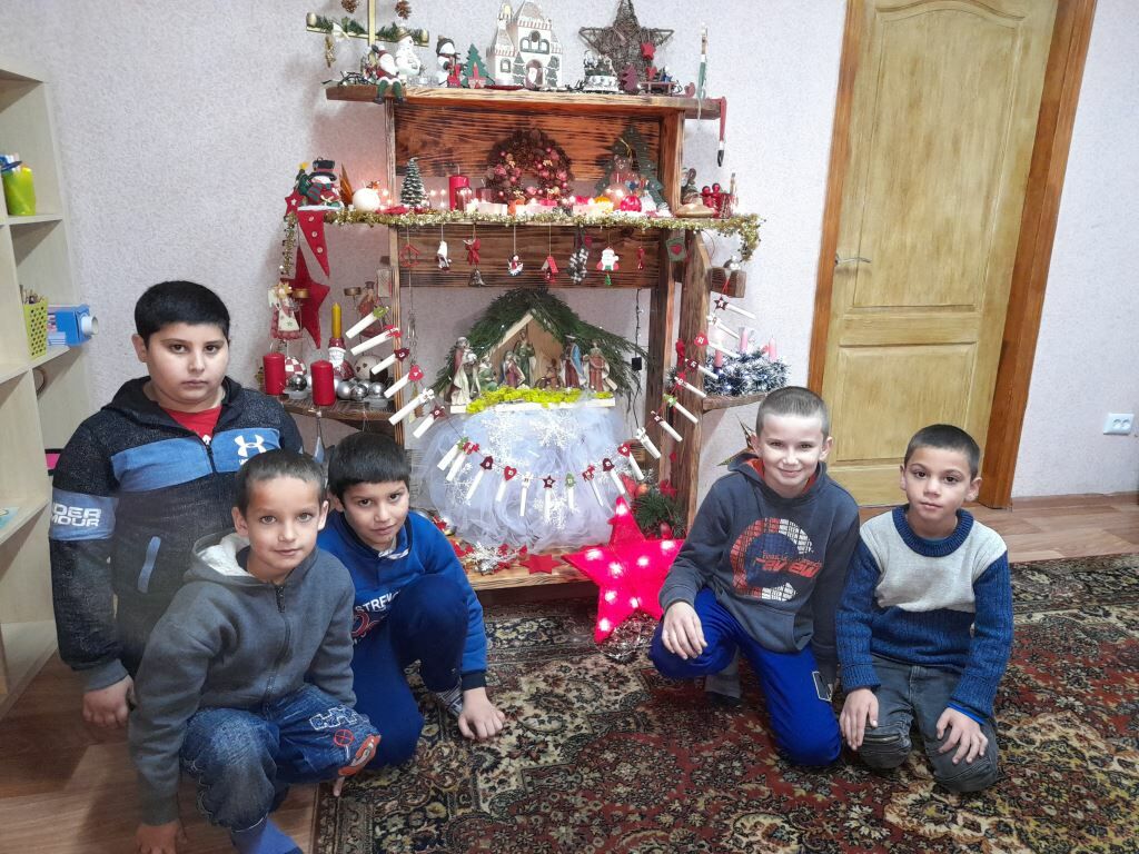 Es war ein wichtiger Augenblick, als wir in unserem Zufluchtsort in Boschedarjewka unsere Krippe aufbauten. Wir sprachen über die einzelnen Figuren, über die Geschenke, die Weisen Jesus gebracht haben.