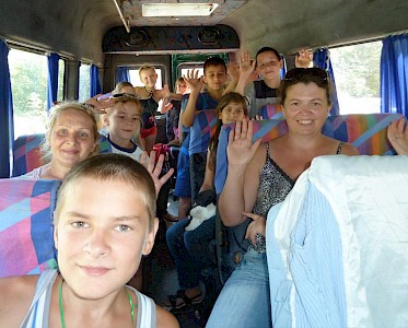 Als unsere Gäste später in den Fahrzeugen sitzen, denken wohl alle an die unvergessliche Zeit am Dnepr Fluss zurück, an das größte Sommerlager in unserer Missionsgeschichte.