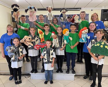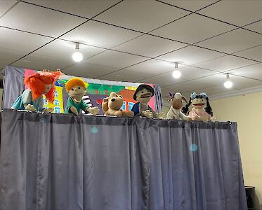 Die Schauspieler unseres Puppentheaters stehen hinter der Leinwand. Nach anstrengenden Proben kann nach langer Zeit wieder eine Aufführung stattfinden. „Ich bin so aufgeregt,“ flüstert Jegor. Nach einer kurzen Anmoderation geht es los. Unsere Puppenspieler bewegen die Puppen im richtigen Takt. Atemlos folgt das Publikum der Aufführung. Beifall bricht aus! Die Puppenspieler sind glücklich, ihre Augen leuchten vor Freude. Die Proben haben sich gelohnt.