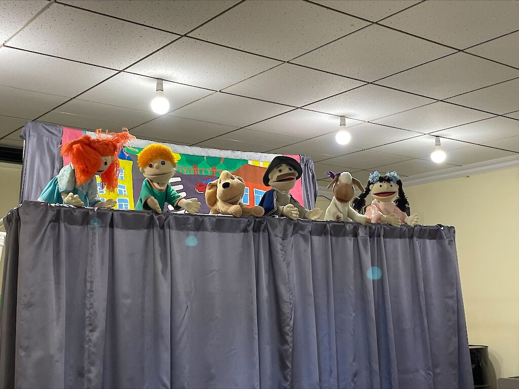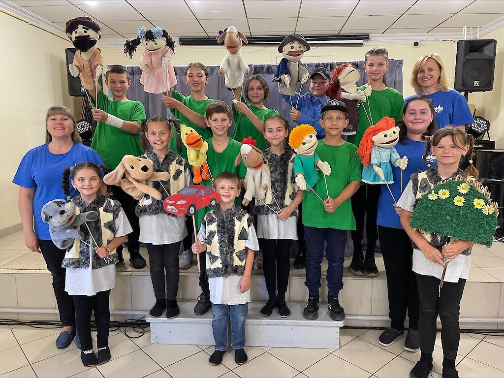 Die Schauspieler unseres Puppentheaters stehen hinter der Leinwand. Nach anstrengenden Proben kann nach langer Zeit wieder eine Aufführung stattfinden. „Ich bin so aufgeregt,“ flüstert Jegor. Nach einer kurzen Anmoderation geht es los. Unsere Puppenspieler bewegen die Puppen im richtigen Takt. Atemlos folgt das Publikum der Aufführung. Beifall bricht aus! Die Puppenspieler sind glücklich, ihre Augen leuchten vor Freude. Die Proben haben sich gelohnt.
