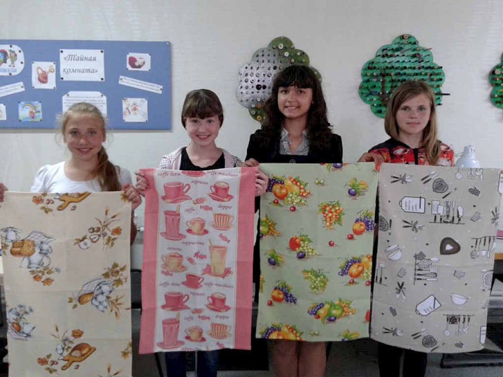 Seit zwei Monaten arbeitet Lena mit ihren Lehrlingen an einem Projekt. Sie stellen Geschirrhandtücher her. Da muss zuerst einmal kalkuliert werden. Wo kaufen wir den Stoff ein? Wieviel kostet er? Wie lange arbeiten wir an einem Handtuch? Wo können wir es verkaufen? Wieviel Geld können wir verlangen?