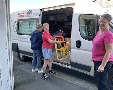 Letzten Donnerstag besuchte uns Ehepaar Götz. Nach einem Aufruf in ihrer Tageszeitung sammelten sie für uns und brachten uns einen Transporter samt Anhänger voller Hilfsgüter. Alles bereits sortiert und sorgfältig beschriftet. Herzlichen Dank für diesen Einsatz!