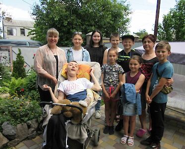 Seit vielen Jahren schon besuchen die Kinder aus unserem „Tageskinderheim am See“ Nasar Braschnik. Nasar hat eine zerebrale Lähmung und lebt bei seiner Mutter. Seit Ausbruch des Krieges ist das Leben für Nasar und seine Mutter noch schwieriger geworden. Sie sind völlig abhängig von staatlichen Zahlungen. Die Sorge, dass die Zahlungen eingestellt werden könnten, lässt sie nicht zur Ruhe kommen. Bei Luftalarm ist es nahezu unmöglich für die Mutter, mit Nasar einen Schutzraum aufzusuchen.