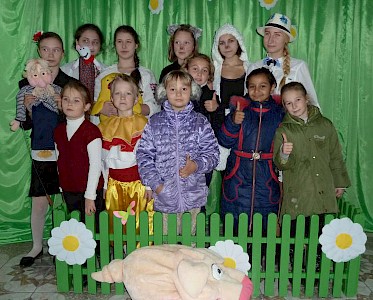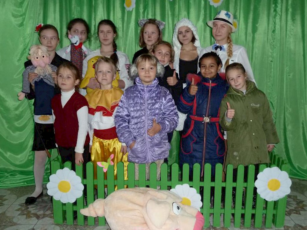 Die Nachricht verbreitete sich in Swetlowodsk in Windeseile, ein Puppentheater kommt zu Besuch, tritt mit einem bekannten ukrainischen Märchen in unserer kleinen Stadthalle auf. Als Oxana dann in unseren Kindergruppen erzählte, dass sie subventionierte Karten erwerben konnte, war die Begeisterung unbeschreiblich.