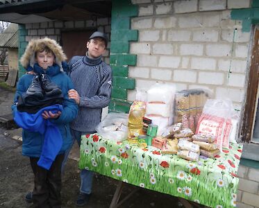 Roman schreibt: „Liebe Freunde! Auf dem Foto seht ihr, wie viel wir kaufen konnten! Ich bin so froh, dass ich eine neue, schöne und vor allem richtig warme Jacke habe! Ich bin so glücklich, dass ihr es euch nicht vorstellen könnt. Jetzt haben wir einen vollen Schrank mit Lebensmitteln. Wenn ihr das nur sehen könntet! Mein Vater wischte sich die Tränen ab und wiederholte: „Halleluja! Halleluja! Das ist so ein Wunder!“ Ich wünsche mir, dass es euch immer gut geht. Eurer Roman“