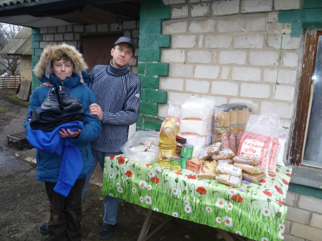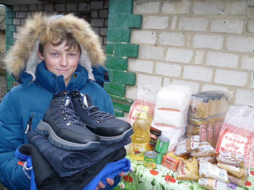 Roman schreibt: „Liebe Freunde! Auf dem Foto seht ihr, wie viel wir kaufen konnten! Ich bin so froh, dass ich eine neue, schöne und vor allem richtig warme Jacke habe! Ich bin so glücklich, dass ihr es euch nicht vorstellen könnt. Jetzt haben wir einen vollen Schrank mit Lebensmitteln. Wenn ihr das nur sehen könntet! Mein Vater wischte sich die Tränen ab und wiederholte: „Halleluja! Halleluja! Das ist so ein Wunder!“ Ich wünsche mir, dass es euch immer gut geht. Eurer Roman“