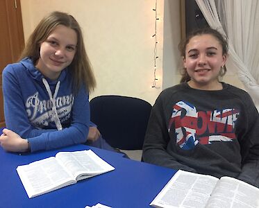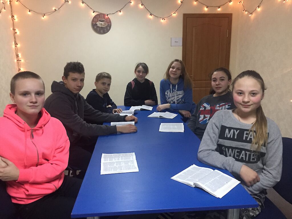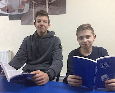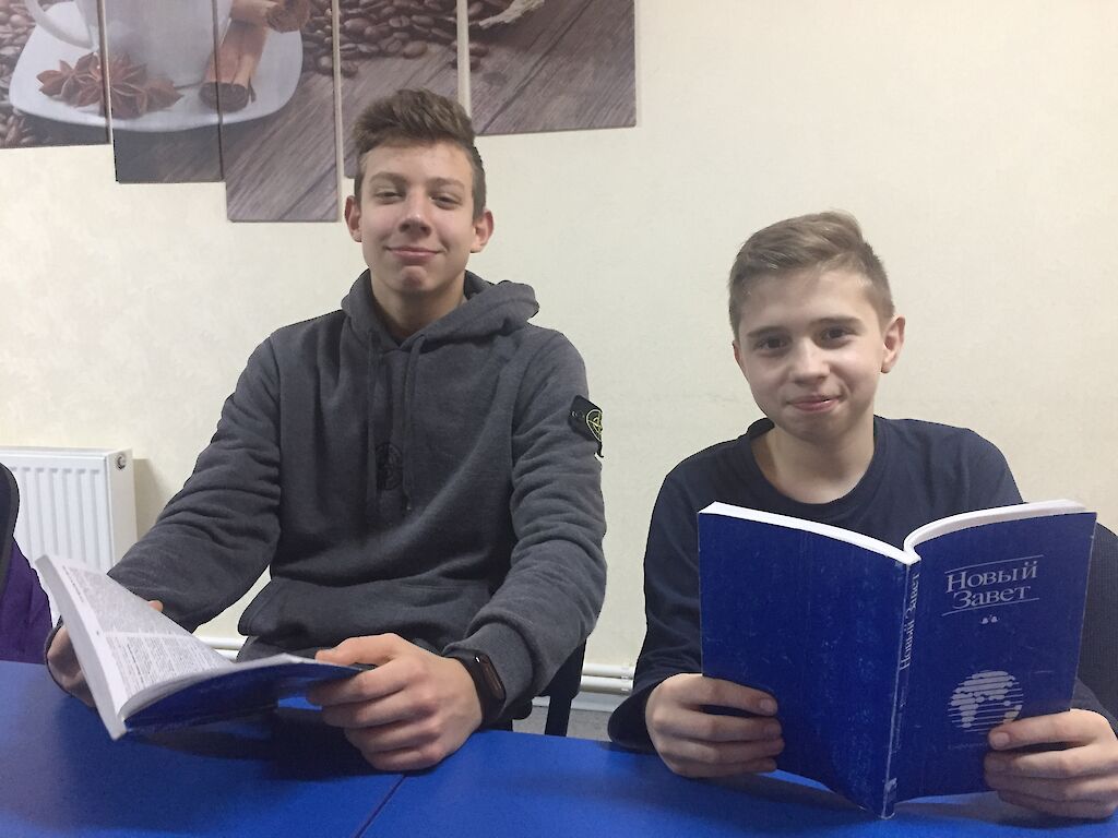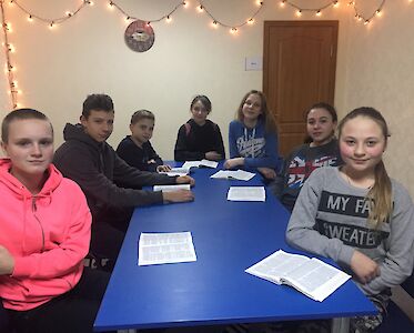 An diesen Abend versammeln sie aber auch zu einem Bibelstudium. Oleg schenkt ihnen Einblicke in die Welt der Bibel. Gemeinsam denken sie über biblische Themen nach, besonders in Themen, die ihnen auf ihren Einsätzen in den „Vergessenen Dörfern“ begegnen.