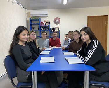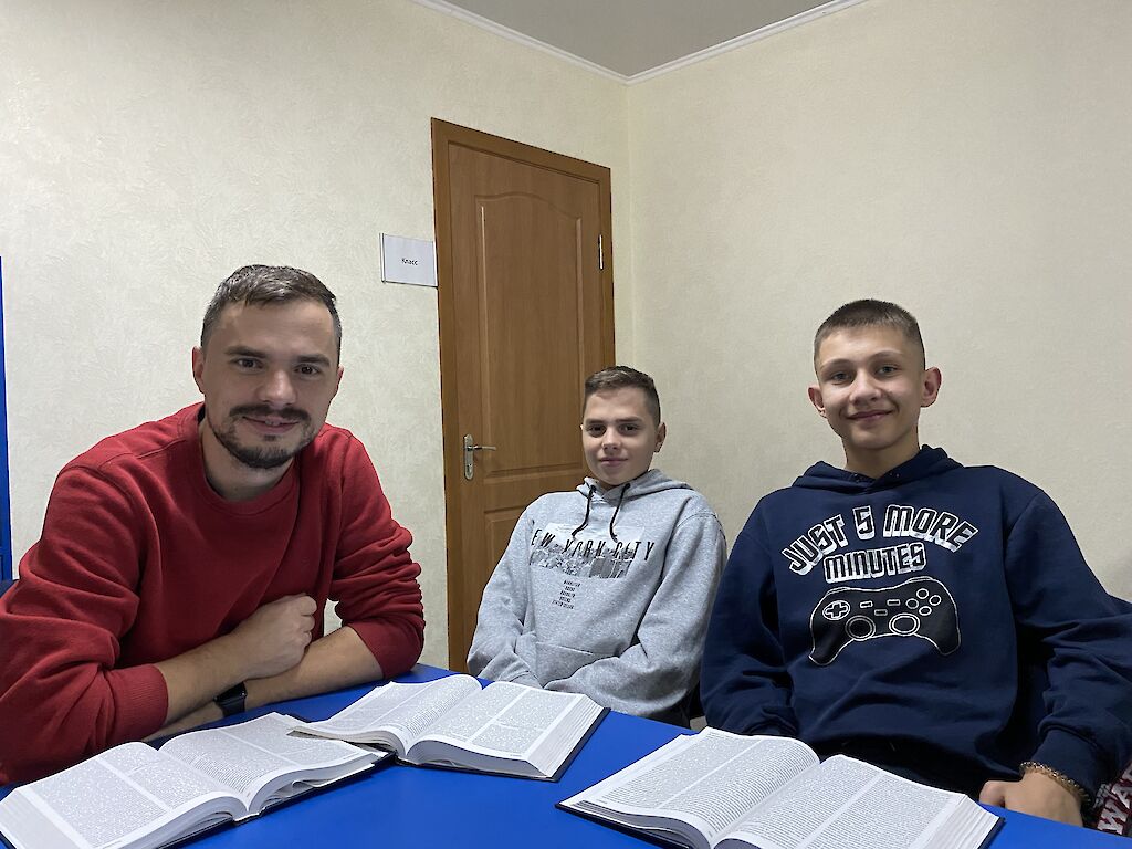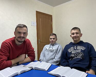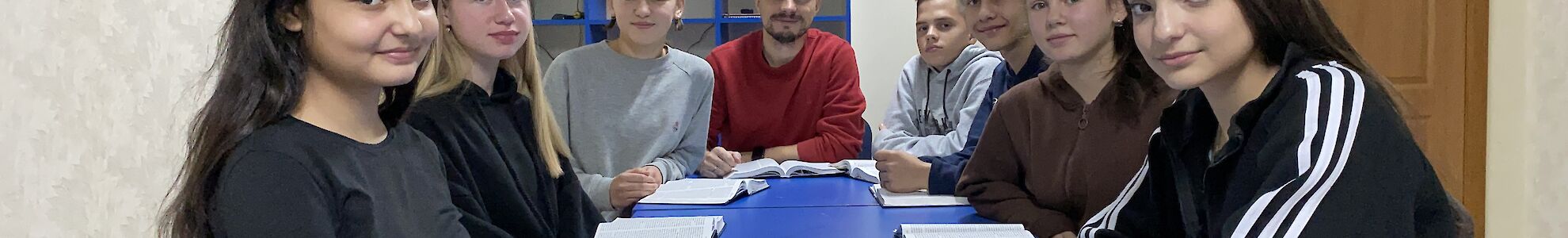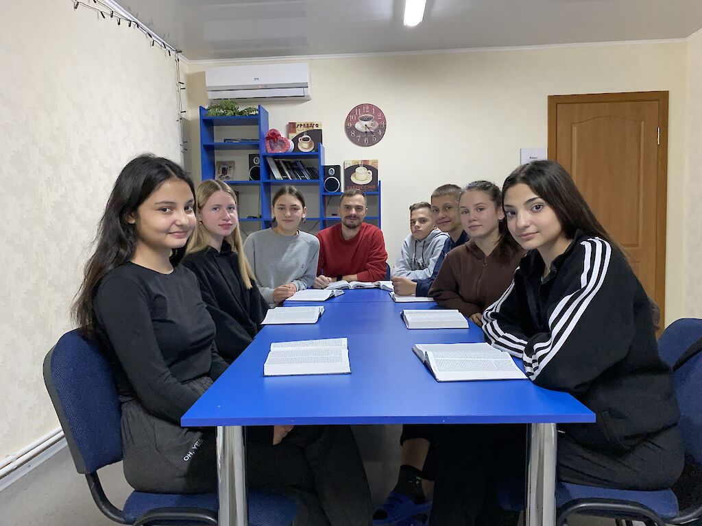 Unsere Jungen Missionare treffen sich regelmäßig zum Bibellesen. Durch den Krieg verstehen die Jugendlichen den Kontext, der vor tausenden Jahren geschrieben wurde, besser. Wir wollen den Menschen nicht nur mit notwendigen Dingen, Hoffnungsboxen und Lebensmitteln helfen. Unsere Jungen Missionare wollen ihnen auch die Liebe Jesu weitergeben. Dies ist nur möglich, wenn man Gottes Liebe persönlich erfährt. Deshalb treffen wir uns regelmäßig in unserer Cafeteria, bei einem warmen Tee und leckeren belegten Brötchen und lesen zusammen in Gottes Wort.