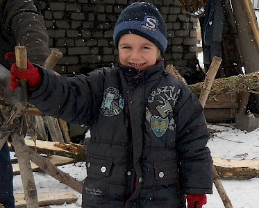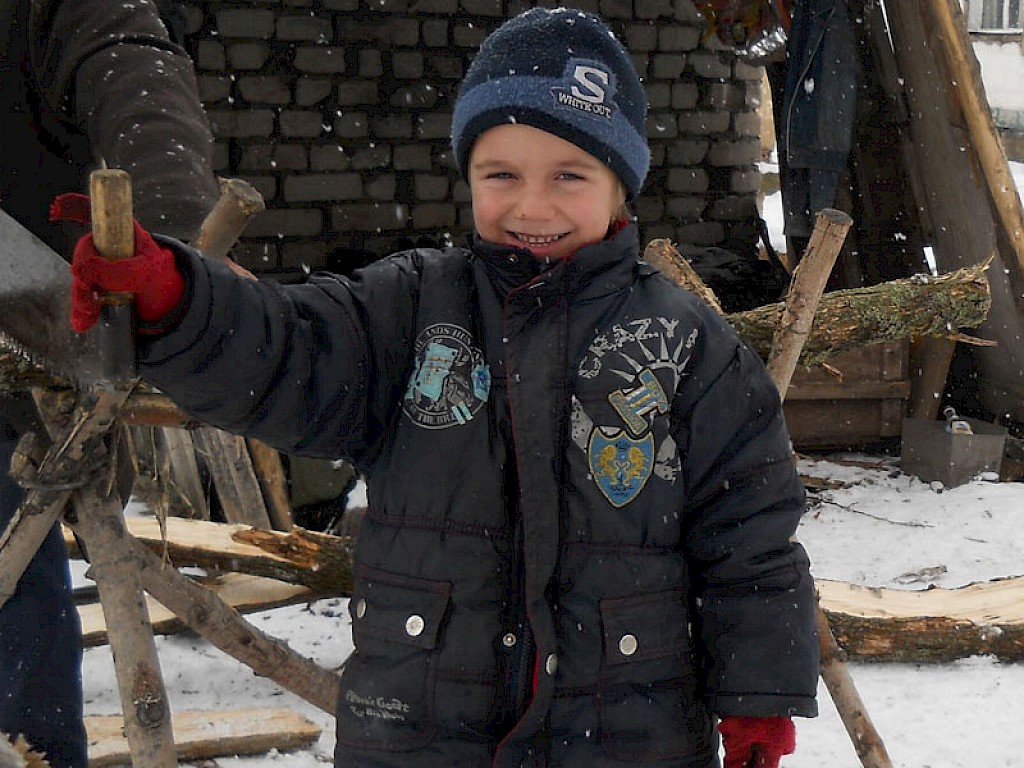 Seit einigen Wochen kommen der siebenjährige Bogdan und der vierjährige Denis in unseren „Zufluchtsort“ in Krinitschki. Die beiden Brüder fühlen sich schon richtig erwachsen, da Denis um Brot betteln geht und Bogdan Holz für den Winter sammelt und Holz hackt.