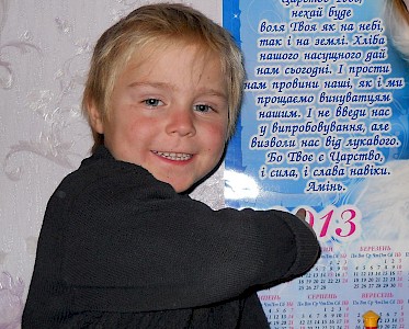Bogdan kann schon ein wenig lesen und hat nun mit seinem Bruder die ersten Bibelverse auswendig gelernt.