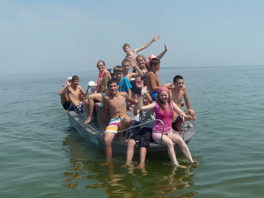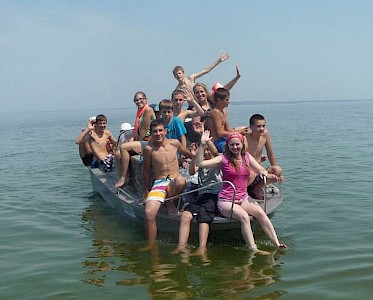 „Herzliche Einladung zu einer Bootsfahrt auf dem Dnjepr!“ – Semen, ein ehrenamtlicher Mitarbeiter, lädt jedes einzelne Team zu einer unvergesslichen Flussfahrt ein. Eine tolle Überraschung nach der morgendlichen Aufräumaktion im Camp unter dem Tagesmotto: „Sorgfältig und genau sein!“ Diesen Charakterzug kennen viele unserer Kinder von zuhause nicht. Chaos und Unordnung sind dort eher an der Tagesordnung. Im Sommerlager sind alle für Sauberkeit und Ordnung in ihren Zelten selbst verantwortlich. Die Mithilfe beim Abwasch nach dem Essen, genauso wie das Händewaschen vor dem Essen, ist für manche Kinder in den ersten Tagen im Camp eine echte Herausforderung.