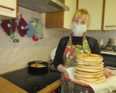 Heute haben wir knusprige Teigtaschen mit einem leckeren Inhalt gebacken, die besonders gut angekommen sind. Bei unseren Besuchen verleihen wir Spiele und Bücher, um unseren Freunden die Zeit der Quarantäne ein wenig zu erleichtern und sitzen lange zu „Gartengesprächen“ hinter ihren Hütten.