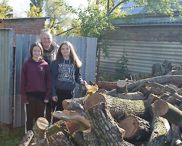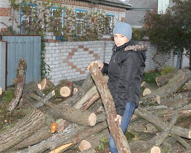 „Frau Slobodianik, wir können die nächsten drei LKW-Ladungen mit Brennholz ausliefern. Zu welcher Familie sollen wir sie fahren? Vielleicht können wir ihnen Morgen die nächsten Ladungen bringen.“