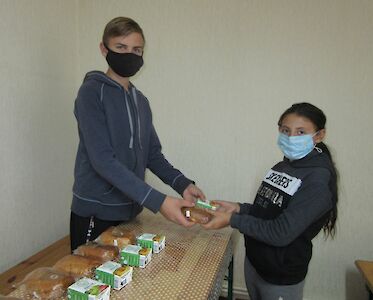 Da sind die Eltern und die Kinder froh, dass sie in unseren Häusern etwas zu essen bekommen. Bevor sie dann wieder nach Hause gehen, erhalten sie von uns eine „Brotbox“, mit Brot, Obst und einem Nachtisch.