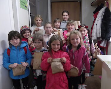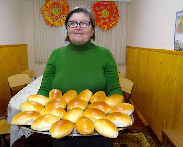 „Tante Wika, ich bin so froh, dass ich jeden Nachmittag eine Brotbox erhalte. Gestern waren meine Brüder so hungrig, dass wir das Brot untereinander geteilt haben.“ Dinara strahlt über ihr ganzes Gesicht.