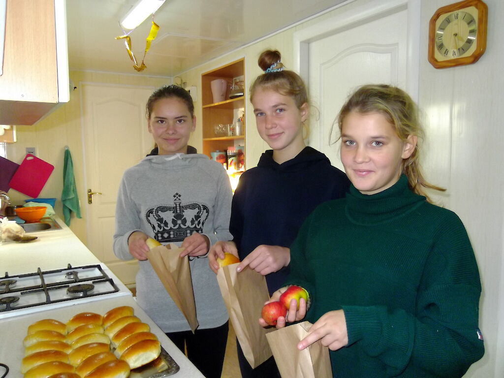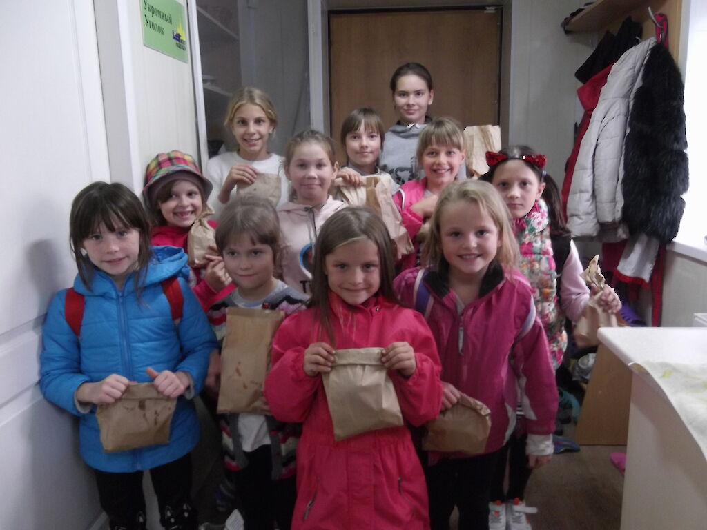 „Tante Wika, ich bin so froh, dass ich jeden Nachmittag eine Brotbox erhalte. Gestern waren meine Brüder so hungrig, dass wir das Brot untereinander geteilt haben.“ Dinara strahlt über ihr ganzes Gesicht.