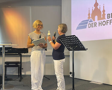 Gestern fand die zweite Missionsveranstaltung mit Lena und Lisa Uchnal, sowie Rebekka und Renate Rudat in Altdorf, in der Nähe von Nürnberg, statt. In der Gemeinde angekommen wurden alle herzlich von unseren langjährigen Missionsfreunden Anni und Joachim Kurrle empfangen. Es war bewegend, nach langer Zeit wieder persönlichen Kontakt zu haben und zu sehen und zu hören, wie sie in ihrem Leben Brücke der Hoffnung unterstützen.