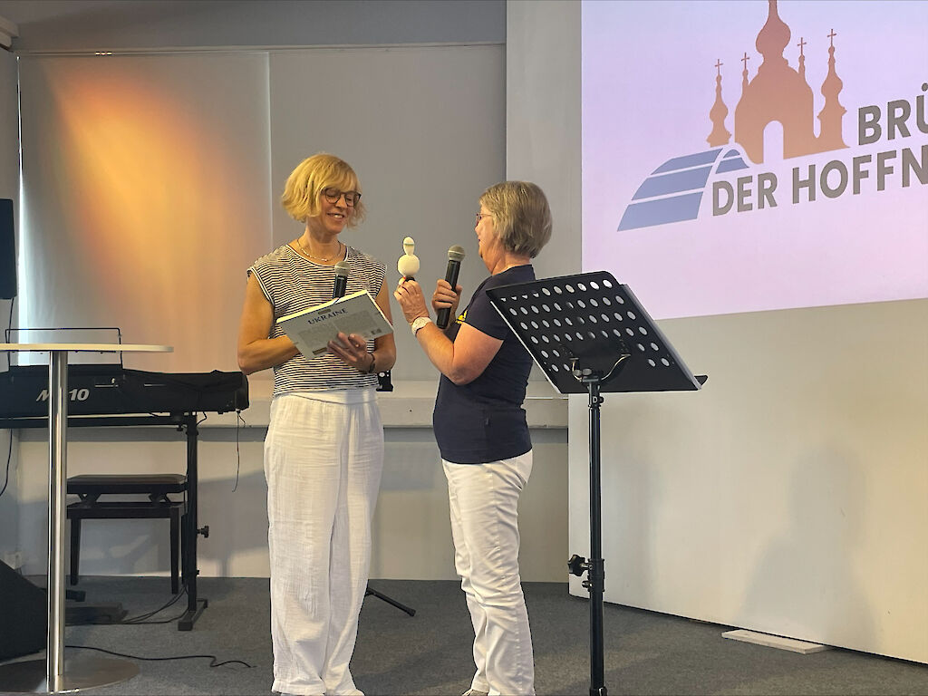 Gestern fand die zweite Missionsveranstaltung mit Lena und Lisa Uchnal, sowie Rebekka und Renate Rudat in Altdorf, in der Nähe von Nürnberg, statt. In der Gemeinde angekommen wurden alle herzlich von unseren langjährigen Missionsfreunden Anni und Joachim Kurrle empfangen. Es war bewegend, nach langer Zeit wieder persönlichen Kontakt zu haben und zu sehen und zu hören, wie sie in ihrem Leben Brücke der Hoffnung unterstützen.