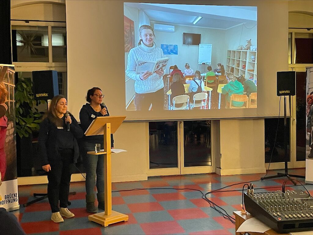 Am Dienstag hat sich unsere Gruppe, bestehend aus Lena Uchnal, Aliona Salimtschuk, Soja Tschechowskaja, Rebekka und Renate Rudat, sowie Paul Herrmann auf den langen Weg nach Jonsdorf gemacht. Dort in der Nähe fand gestern Abend die erste Missionsveranstaltung unter dem Motto: Brücke der Hoffnung ERLEBEN statt.