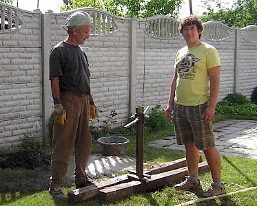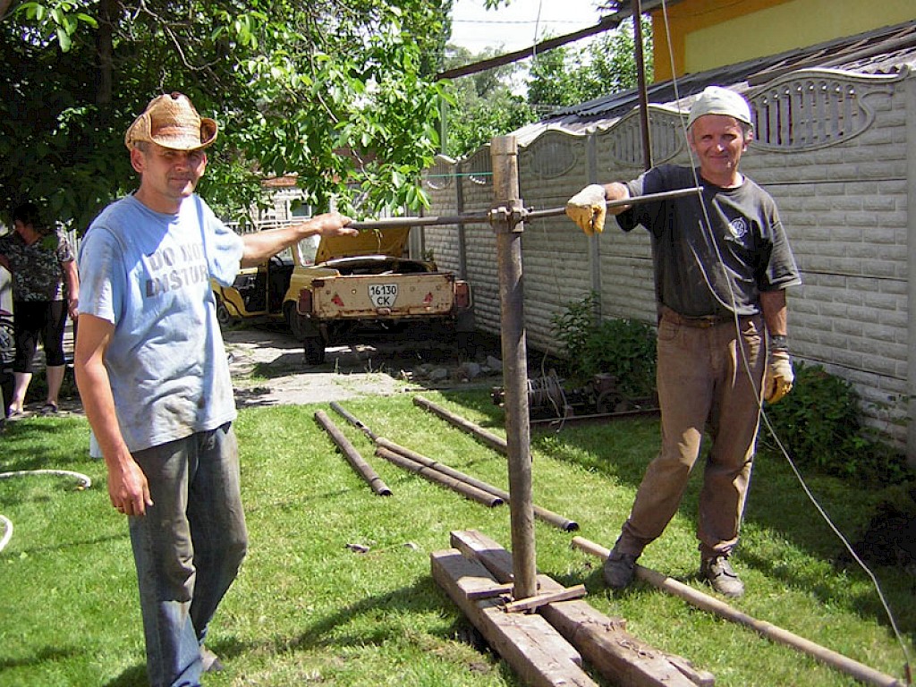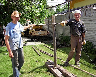 Unsere Jungen stellten den Arbeitern unendlich viele Fragen. Nun sind wir alle begeistert, dass wir gutes Wasser in den beiden Häusern haben und dass es im Sommer, dank einer Pumpe, starken Wasserdruck gibt.