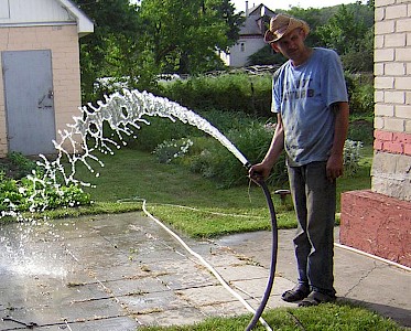 In Taborische, dem ärmsten Stadtteil von Swetlowodsk, haben wir oft mit einem Problem zu kämpfen: Wasser. Wenn es lange regnet, versinken wir oft tagelang in Wasser. Wenn es im Sommer trocken ist, sprengen alle ihre Gärten und der Wasserdruck sinkt fast auf den Nullpunkt. Doch das schlimmste Problem ist die schreckliche Wasserqualität.