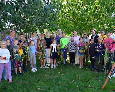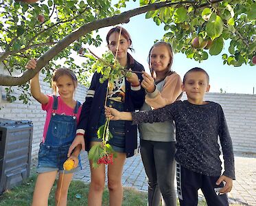 Die Kinder von Villa Sonnenschein unternahmen vor kurzem einen Herbstspaziergang. Auf dem Weg in den Park sammelten sie bunte Blätter, Äpfel, Birnen, Nüsse und Blumen. Doch plötzlich heulte die Sirene los. Es gab Luftalarm! Mit ängstlichen Augen schauten die Kinder ihre Erzieherinnen an. Wo sollten sie Schutz suchen?