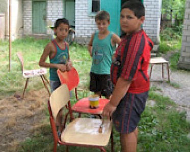 Vor längerer Zeit erhielten wir mit einem Hilfsgütertransport aus Deutschland bunte Stühle, die wir in unseren „Zufluchtsort“ nach Pawlowka brachten. Die Stühle sind zwar noch stabil, doch die Farbe blättert immer mehr an. In der vergangenen Woche plante Luda Slobodianik, die unsere Missionsarbeit in den „Vergessenen Dörfern“ leitet, eine ganz besondere Aktion. Bewaffnet mit Schmirgelpapier, Farbe und Pinseln, schleppten wir die Stühle gemeinsam auf den Hof. Zuerst erklärte Luda den gespannten Jungen und Mädchen ihre Aufgaben und dann ging es auch schon los. Die Begeisterung ist kaum zu beschreiben und am Ende des Nachmittags betrachteten wir stolz unsere bunten Meisterwerke.