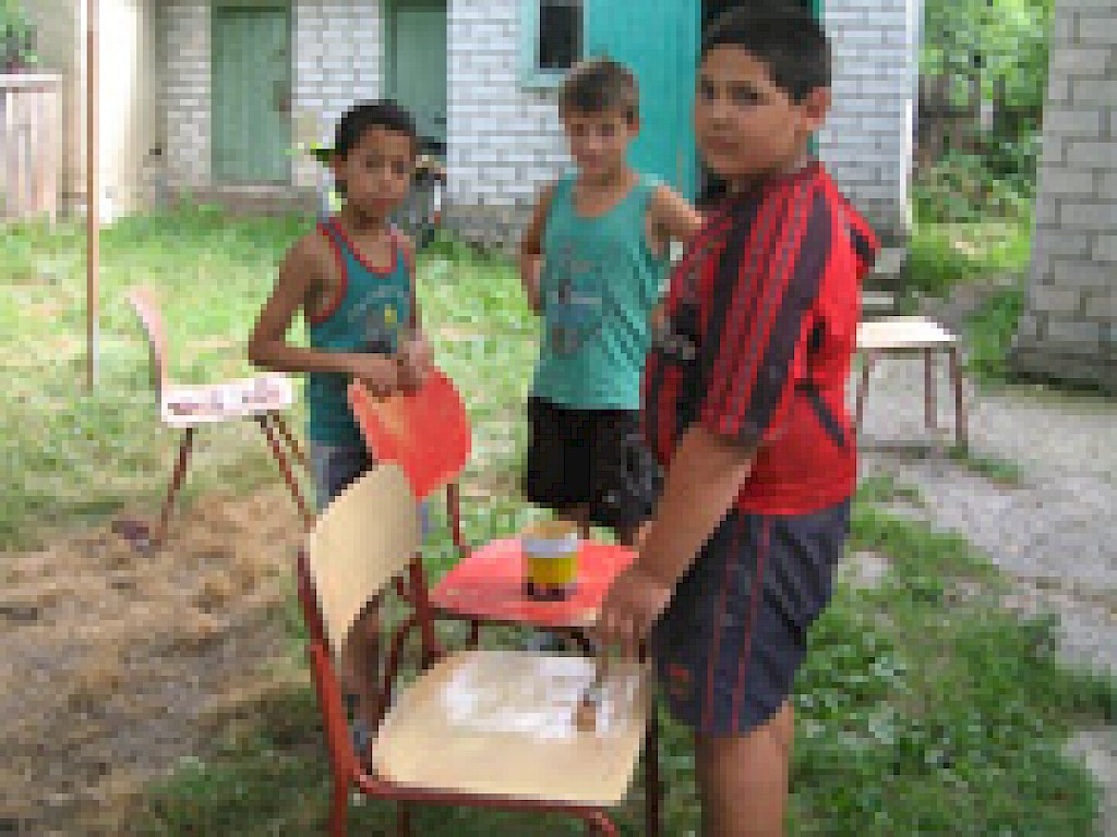 Vor längerer Zeit erhielten wir mit einem Hilfsgütertransport aus Deutschland bunte Stühle, die wir in unseren „Zufluchtsort“ nach Pawlowka brachten. Die Stühle sind zwar noch stabil, doch die Farbe blättert immer mehr an. In der vergangenen Woche plante Luda Slobodianik, die unsere Missionsarbeit in den „Vergessenen Dörfern“ leitet, eine ganz besondere Aktion. Bewaffnet mit Schmirgelpapier, Farbe und Pinseln, schleppten wir die Stühle gemeinsam auf den Hof. Zuerst erklärte Luda den gespannten Jungen und Mädchen ihre Aufgaben und dann ging es auch schon los. Die Begeisterung ist kaum zu beschreiben und am Ende des Nachmittags betrachteten wir stolz unsere bunten Meisterwerke.