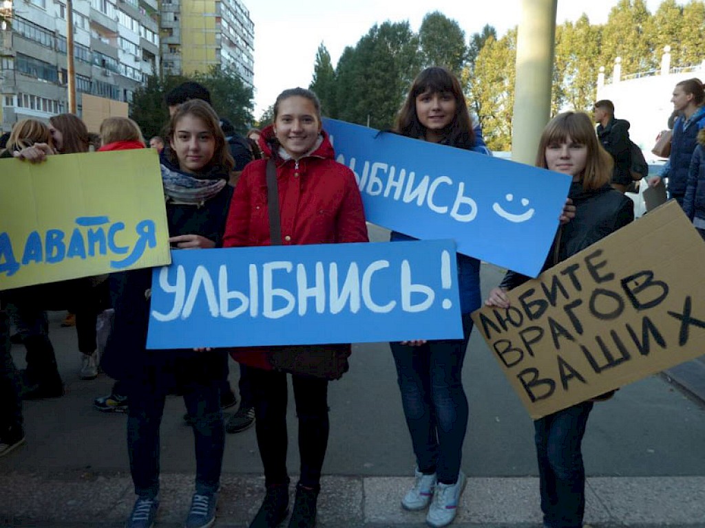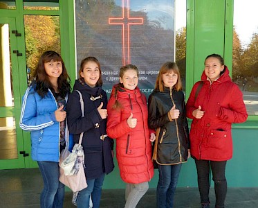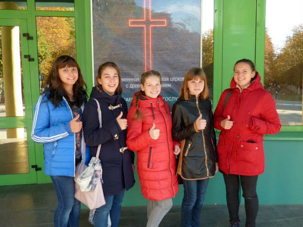 Vor einigen Monaten haben wir in Swetlowodsk eine Mädchenband gegründet, die „Clean Hearts“, saubere Herzen, heißt. Wir haben die Musikinstrumente Keyboard, Bassgitarre, Gitarre, Cajon aus Deutschland mitgebracht. Ein Keyboardspieler aus einer Gemeinde in Swetlowodsk hilft ehrenamtlich bei den Proben.