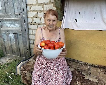 Vor einiger Zeit kam eine ältere Dame zu unseren Mitarbeitern in der Ukraine. Sie hielt einen Eimer mit geernteten Tomaten in der Hand und sagte: „Die Tomaten habe ich für meine Enkelkinder angebaut. Dann sind sie geflüchtet und ich habe sie schon lange nicht mehr gesehen. Ich hatte gehofft, dass sie zurückkehren würden. Jetzt bin ich allein. Ich denke, dass die Tomaten den Kindern in ihren Häusern eine Freude bereiten werden.“ Voller Wärme und Liebe schaute sie unsere Mitarbeiter an.
