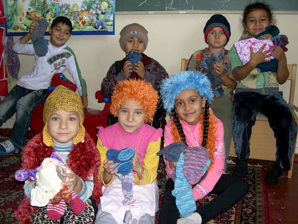 Handarbeitsgruppen und Frauenkreise haben es sich zur Aufgabe gemacht, warme Mützen, Schals, Handschuhe und Socken für die Ukraine zu stricken. Was für wunderbare Geschenke! Die Jungen und Mädchen konnten ihr Glück kaum fassen.