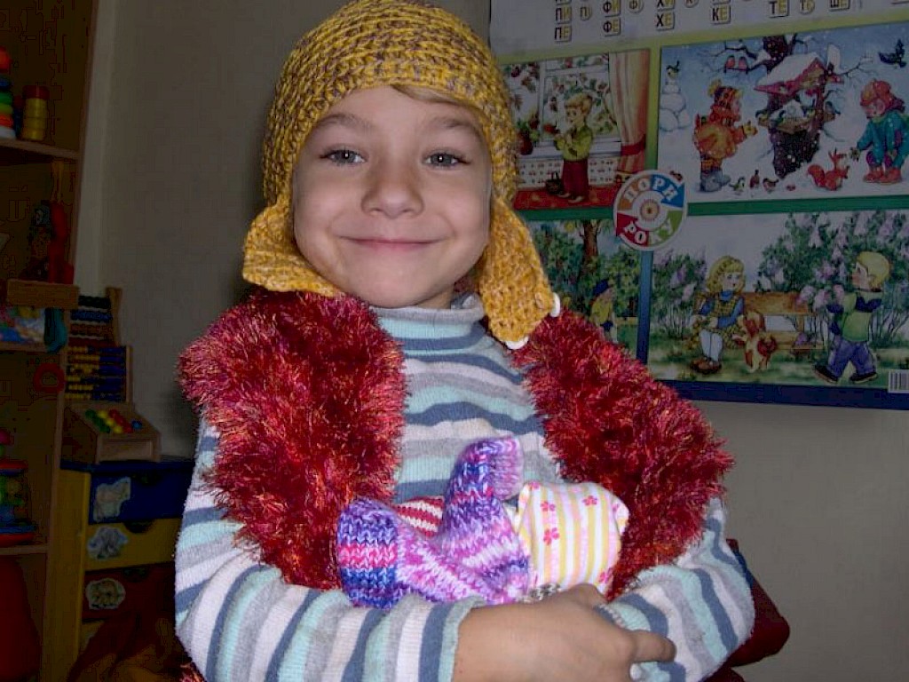 Heute ist ein unbeschreibliches Fest. Wir verteilen warme Mützen, Schals, Handschuhe und Socken, die uns Freunde aus Deutschland geschenkt haben, die der letzte Hilfsgütertransport zu uns nach Swetlowodsk gebracht hat.