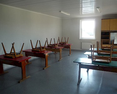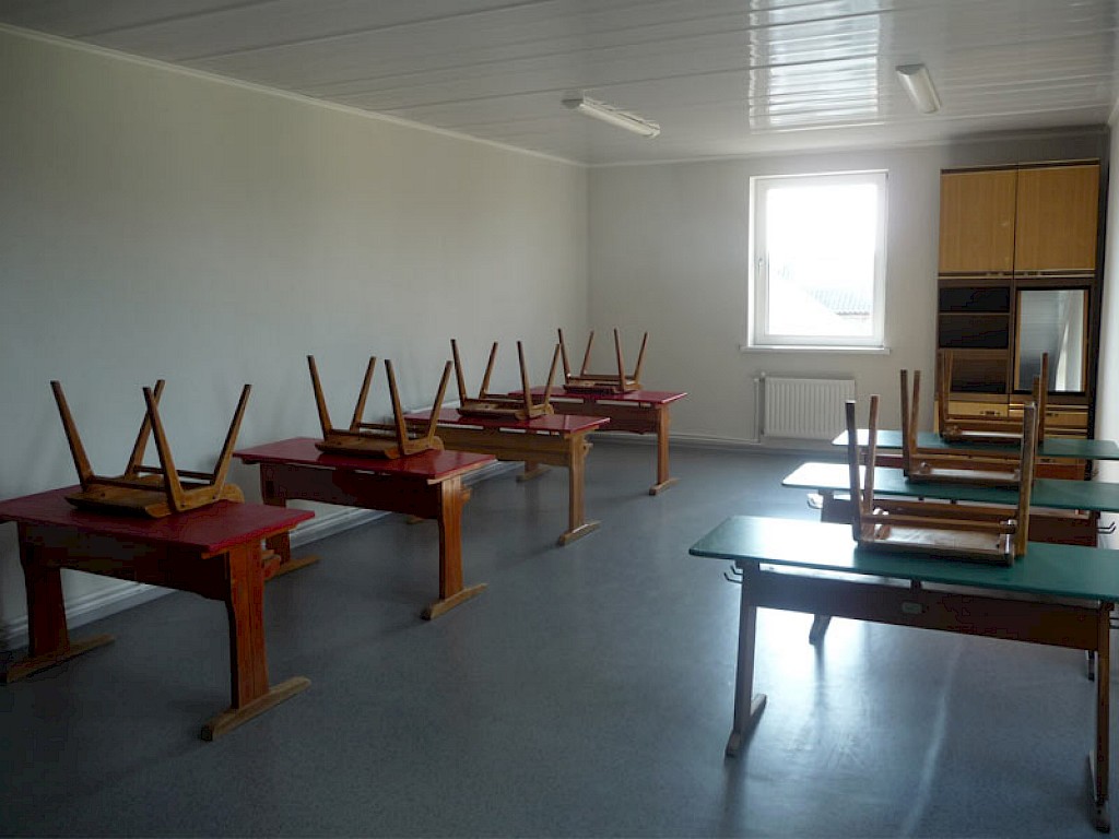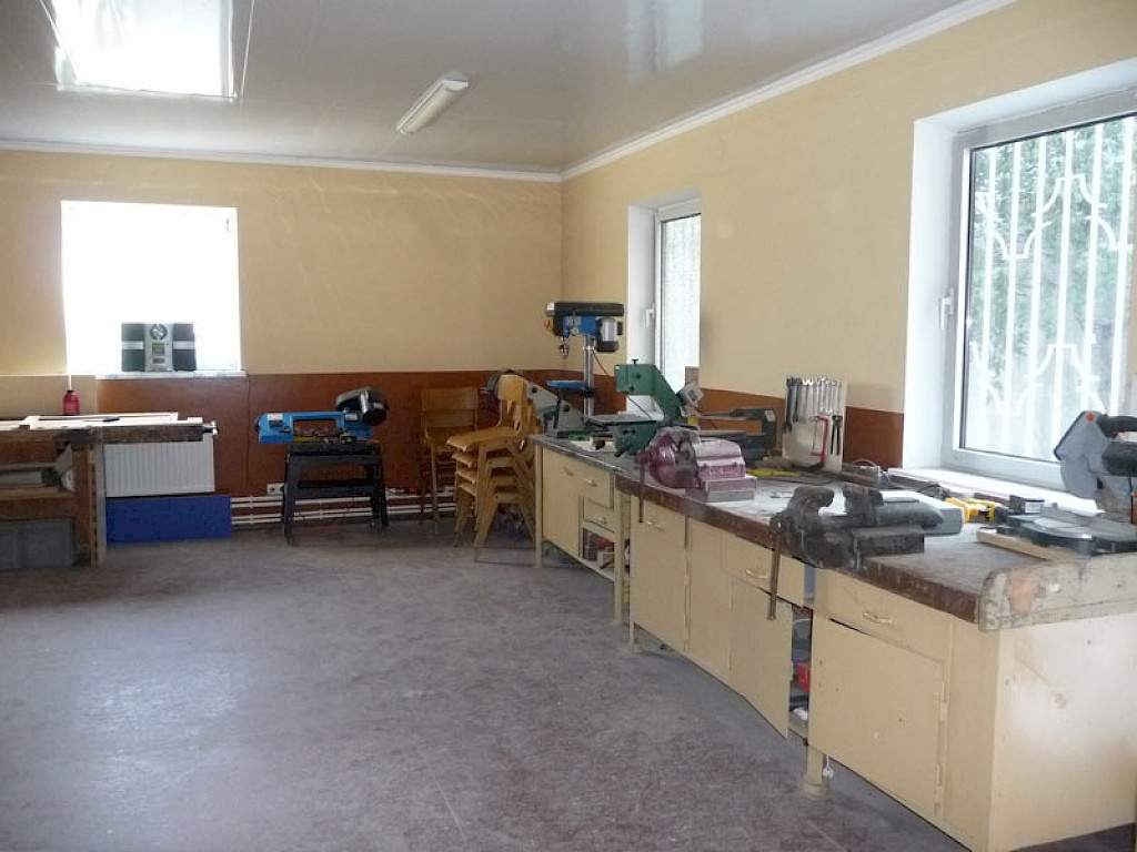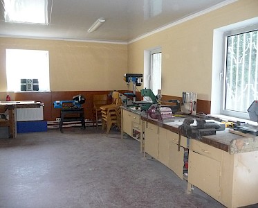 Im Schulraum stehen Schulbänke und Stühle aus Deutschland und an der Wand hängt eine große Tafel. In der Cafeteria, die auf viele Seminare wartet, erfreuen uns die blauen Tische, die von den „Lehrlingen“ gebaut wurden. In die „Lehrwerkstatt für Jungen“ werden gerade zwei weitere Werkbänke und neue Maschinen vom letzten Transport geschleppt.