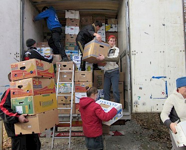 Anfang November machten sich Dima Grabenko und Peter Degtjar wieder einmal auf die lange Reise, um Hilfsgüter in Deutschland abzuholen. Nach einem kurzen Zwischenstopp in unserem Missionsbüro in Hüttenberg, luden sie in Hille den halben Lastwagen. Unsere Freunde aus Ostfriesland hatten eine Ladung nach Hille gebracht.