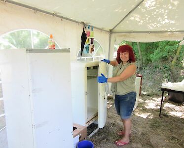 Wir hatten bereits in den vergangenen Jahren festgelegt, wo unsere Zelte stehen würden. Unsere Köchinnen richten das Küchenzelt ein, verwöhnen uns mit einem ersten Frühstück.