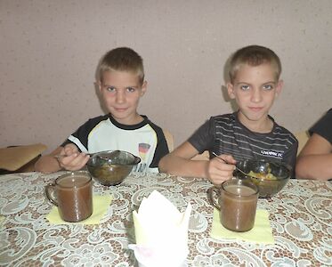 „Tante Natascha, ich freue mich immer den ganzen Tag auf dein Mittagessen!“ Neugierig schleichen zwei Jungen an der Tür der Küche von unserem „Zufluchtsort“ in Pawlowka vorbei und versuchen am Duft zu erkennen, was es heute wohl zum Mittagessen gibt.