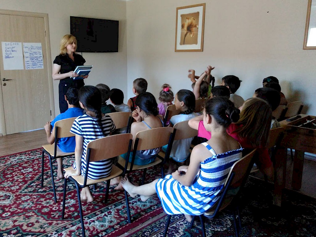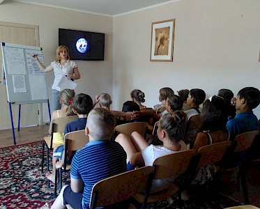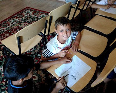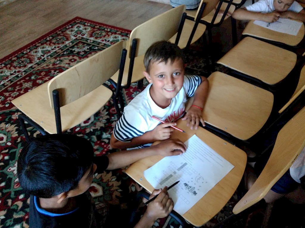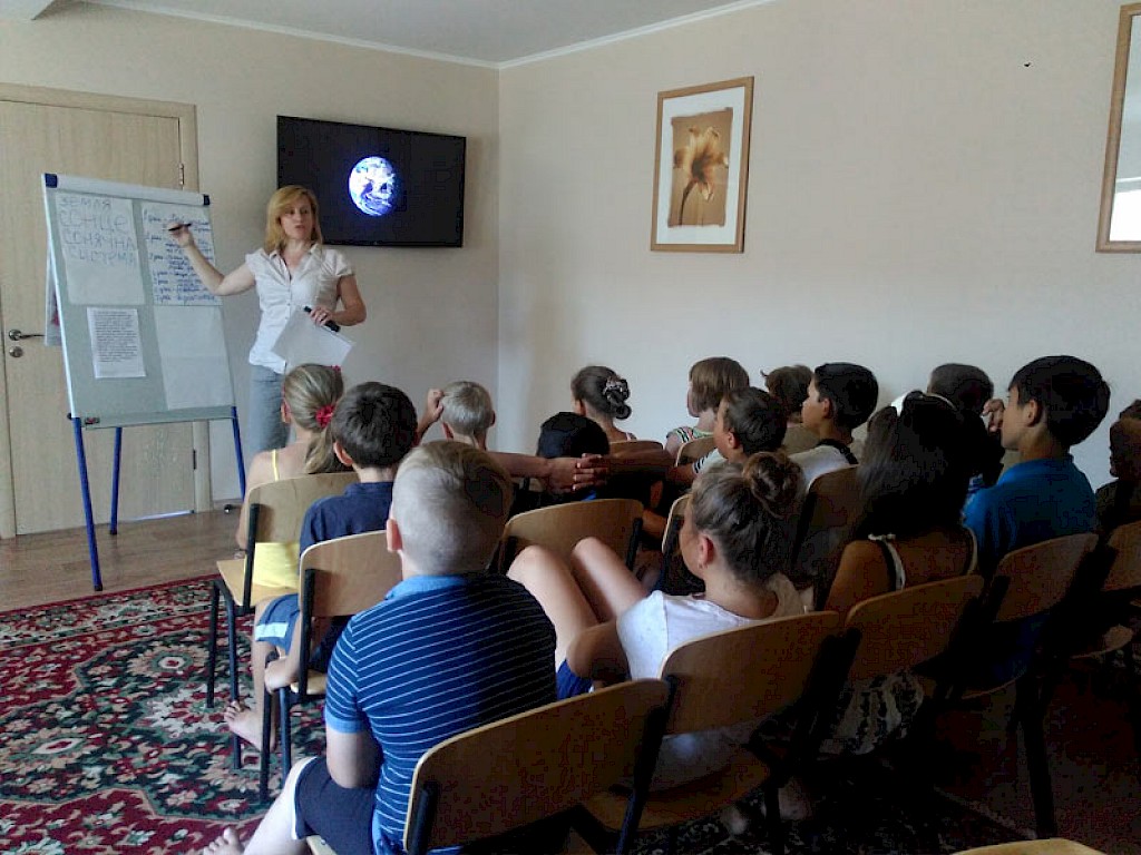 „Wenn ich zum Himmel hochschaue, fühle ich mich ganz klein!“ Gespannt verfolgt Kolja Sawenko den Unterricht von Aliona Salimtschuk, in dem sie über das unendliche Weltall nachdenken. Wir schauen uns einige Planeten an, lernen ihre Namen kennen, versuchen die Entfernungen im All ansatzweise zu erfassen.