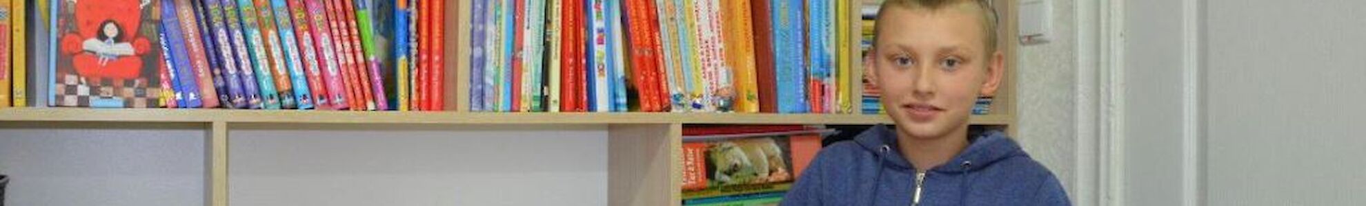 Denis Lungo kommt schon viele Jahre in unsere Villa Sonnenschein. Jetzt ist er in einem Alter, in dem er Verantwortung übernehmen kann. Denis ist für unsere Bibliothek zuständig. Er ermutigt andere Kinder zum Lesen, beaufsichtigt die Ausgabe und Rückgabe der Bücher. Von Zeit zu Zeit organisiert er Lesestunden. Für Denis ist das eine gute Gelegenheit, seine organisatorischen Fähigkeiten und seine persönliche Entwicklung voranzubringen.