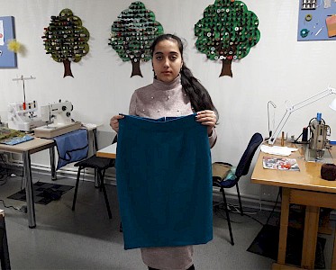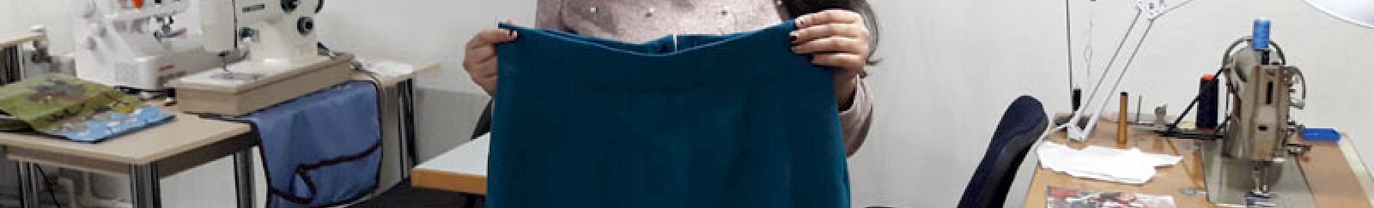 „Tante Lena, ich kann es kaum fassen, ich hab ganz alleine meinen ersten Rock genäht. Er ist so weich, so warm, wunderschön.“ Elvira kann ihr Glück kaum fassen. Lange Zeit hat sie in unserer „Lehrwerkstatt“ gelernt. Nun sieht sie die Früchte ihrer Lehrzeit.